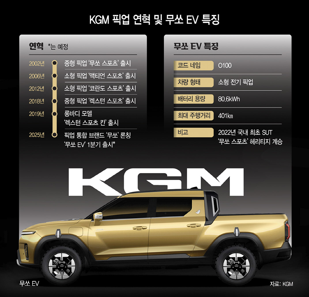 | 구분 | 기존 내연기관 픽업 (예: 렉스턴 스포츠) | KGM O100 (전동화 픽업 예상치) |