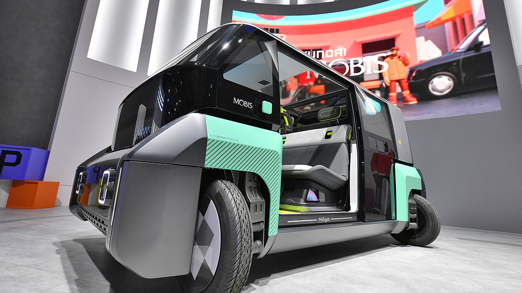 이 혁신적인 주행의 비밀은 바퀴 하나에 구동, 제동, 조향, 현가 기능을 모두 통합한 모듈화 기술에 있습니다. 기존 내연기관차의 중앙 엔진과 굵은 구동축을 완전히 삭제하고, 네 개의 바퀴가 각각 독립적으로 움직일 수 있도록 설계되었습니다.